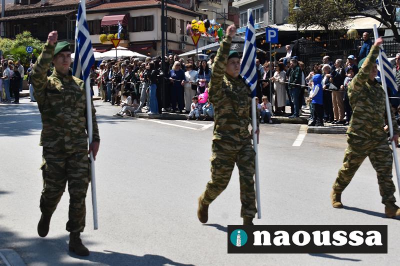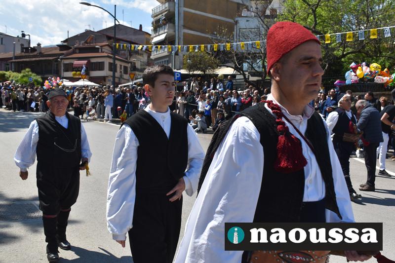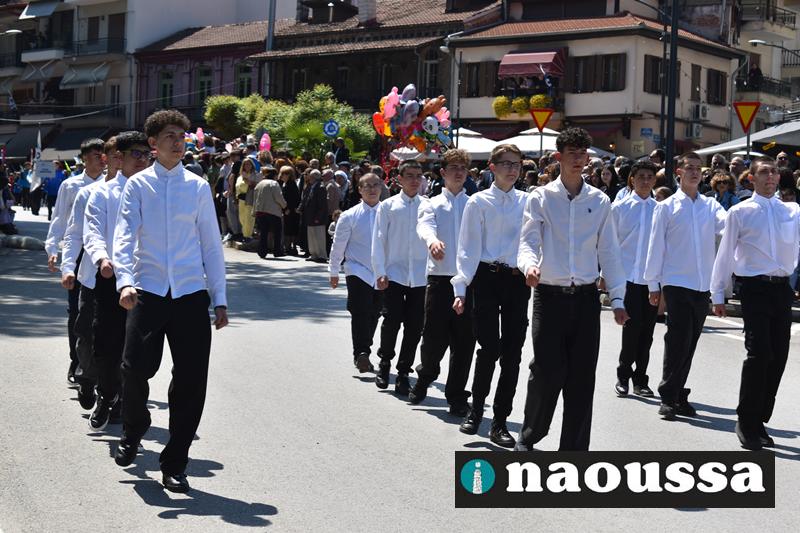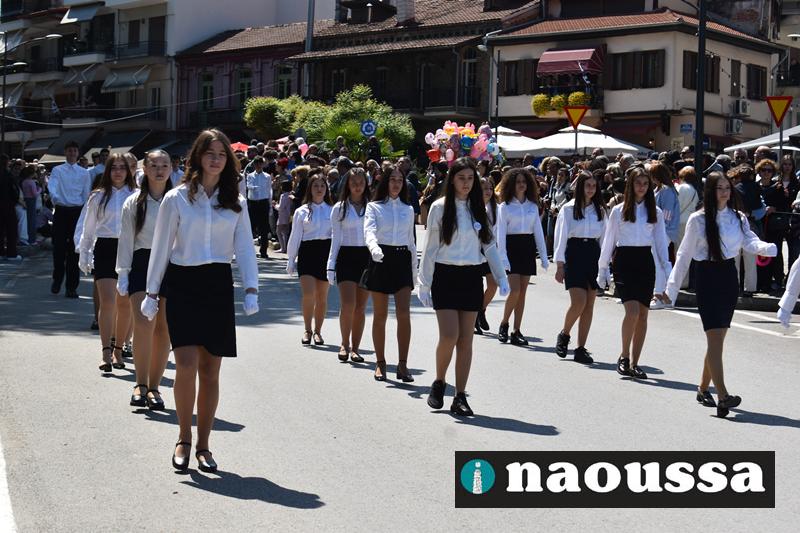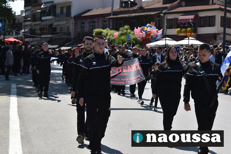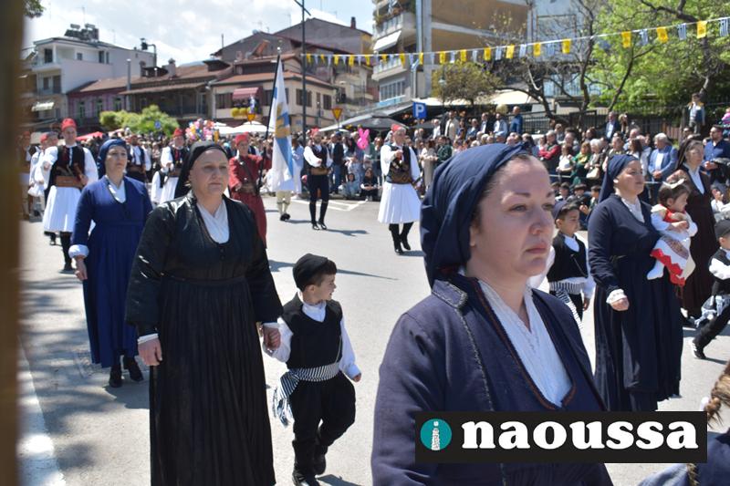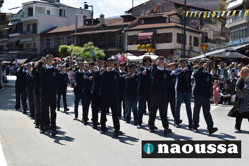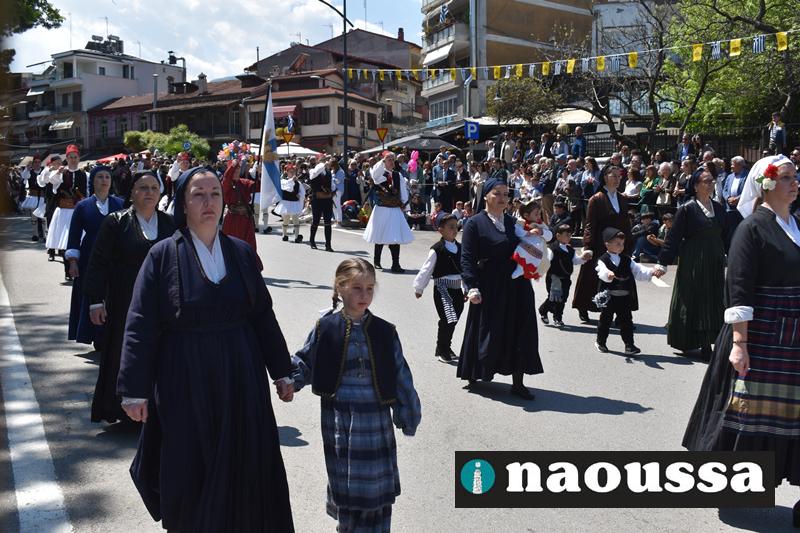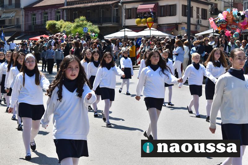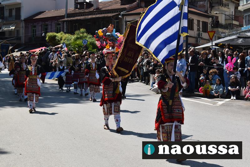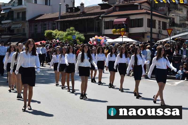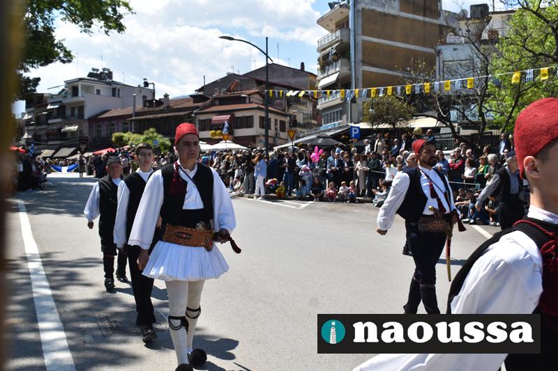 Καταχειροκροτήθηκαν τα μέλη των πολιτιστικών, αθλητικών σωματείων, οι μαθητές των σχολείων και ο Ελληνικός Στρατός στην παρέλαση του Ολοκαυτώματος της Νάουσας το μεσημέρι της Κυριακής. Κόσμος κάθε ηλικίας συγκεντρώθηκε στην Μεγάλου Αλεξάνδρου για να δει την παρέλαση που ολοκληρώθηκε με επιτυχία.