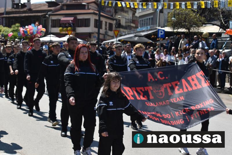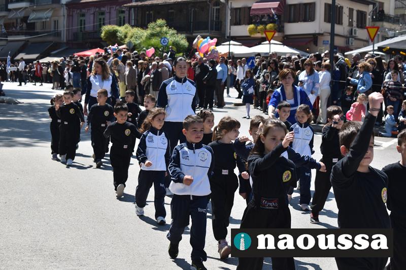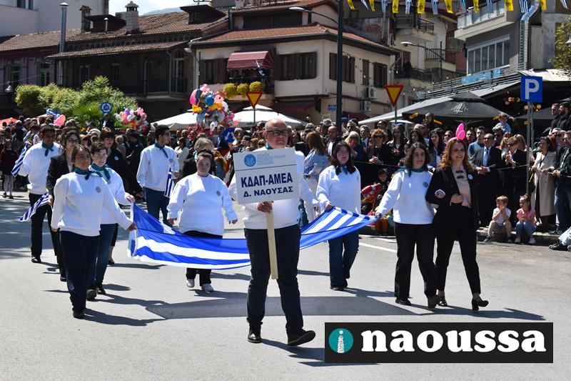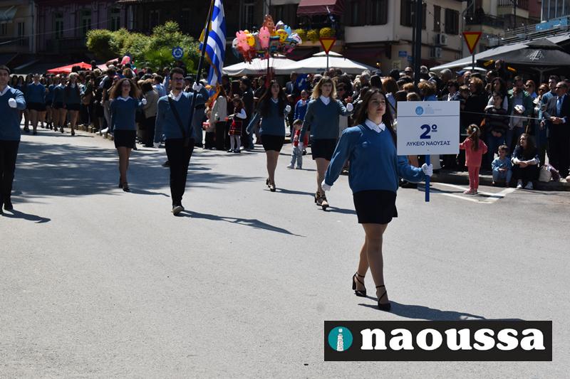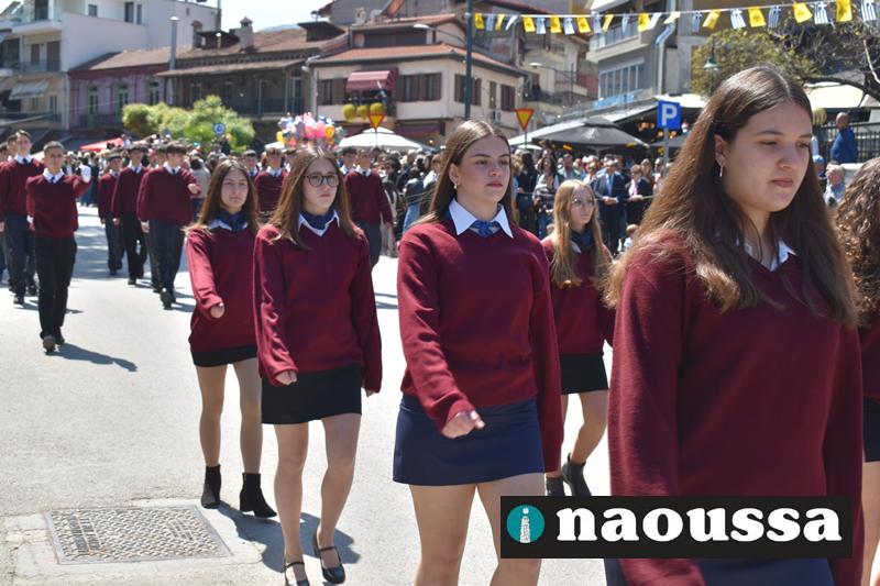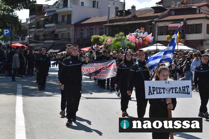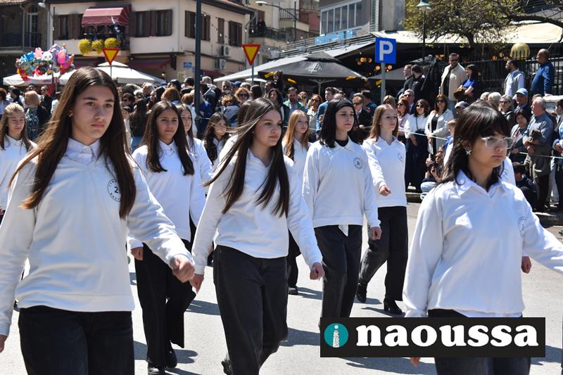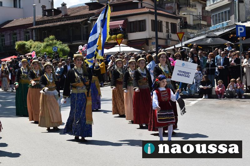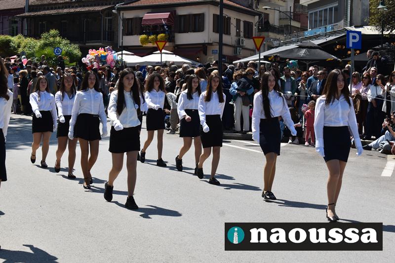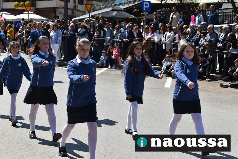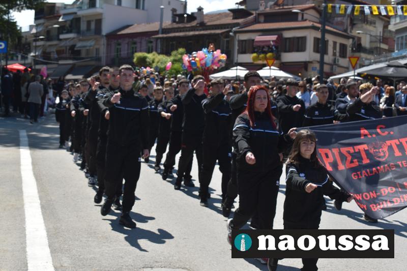 Καταχειροκροτήθηκαν τα μέλη των πολιτιστικών, αθλητικών σωματείων, οι μαθητές των σχολείων και ο Ελληνικός Στρατός στην παρέλαση του Ολοκαυτώματος της Νάουσας το μεσημέρι της Κυριακής. Κόσμος κάθε ηλικίας συγκεντρώθηκε στην Μεγάλου Αλεξάνδρου για να δει την παρέλαση που ολοκληρώθηκε με επιτυχία.