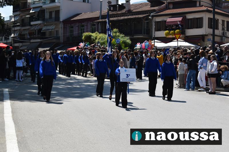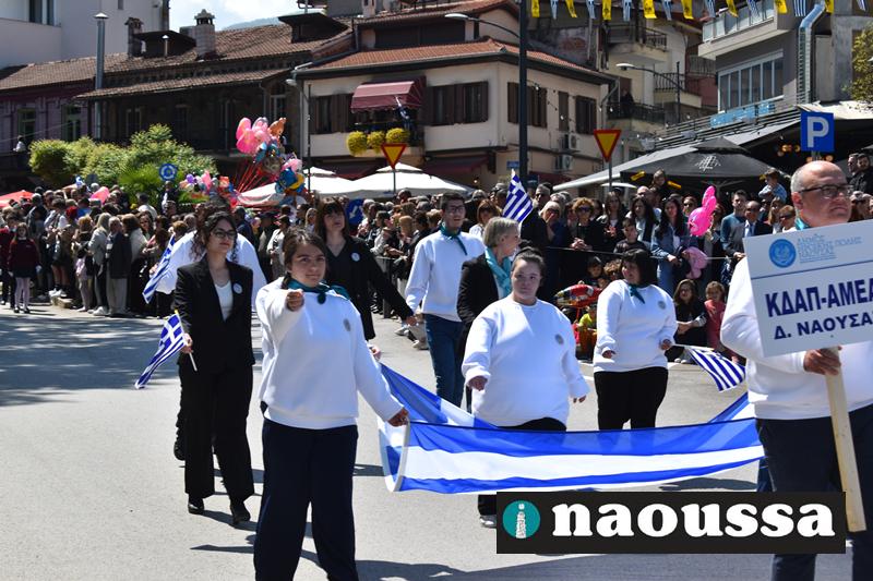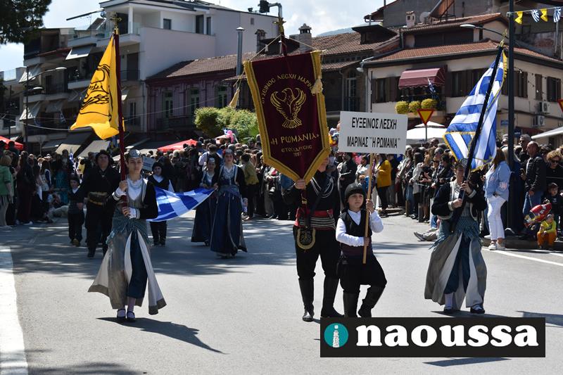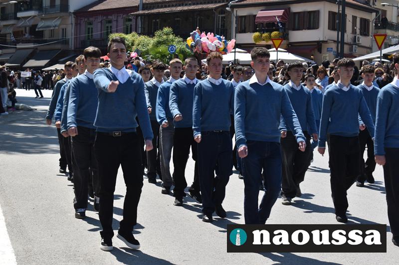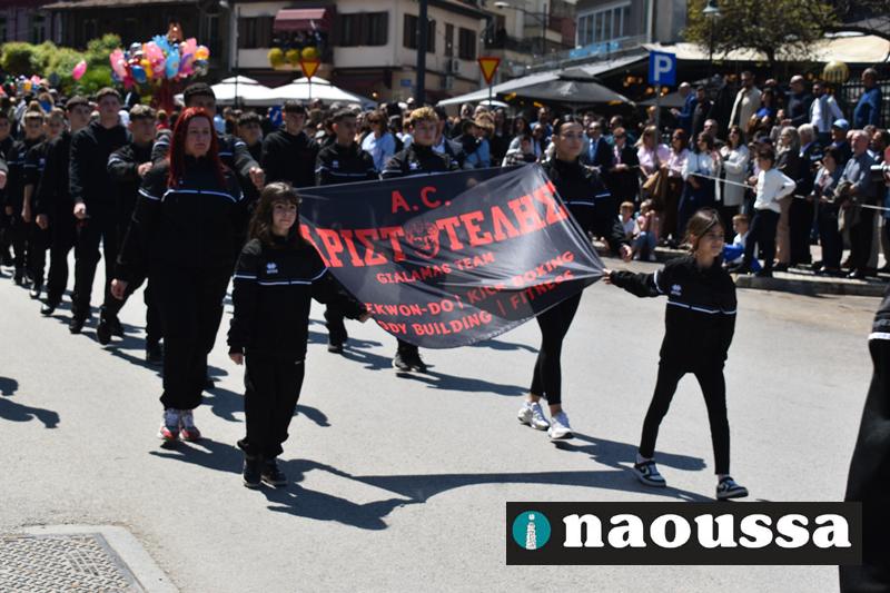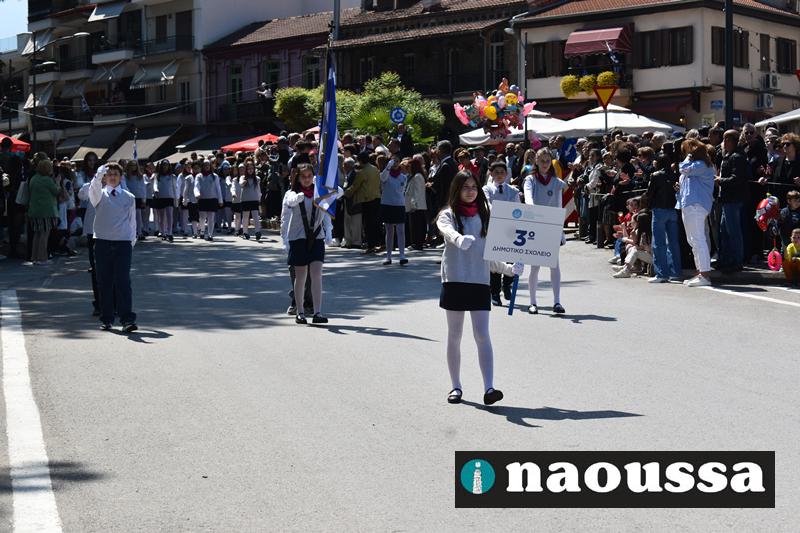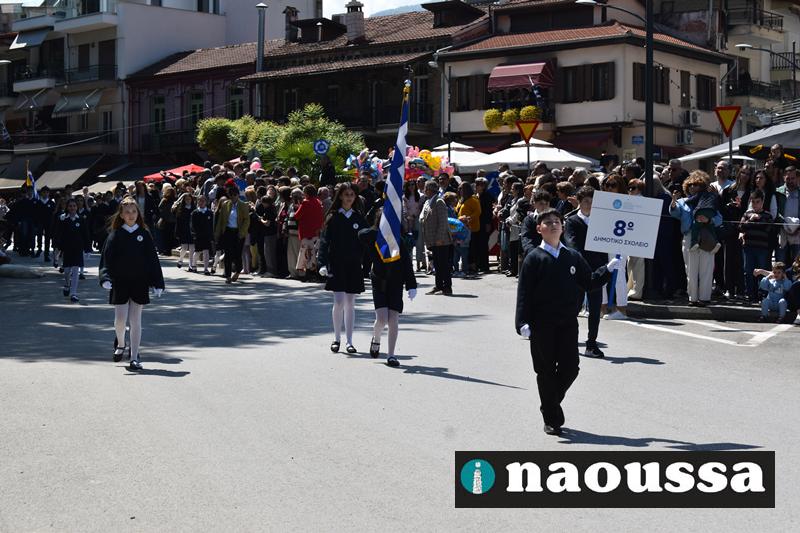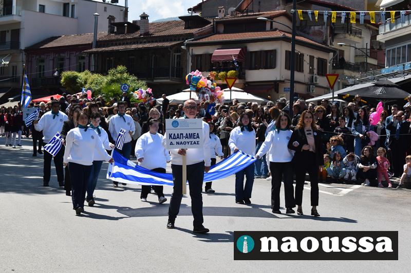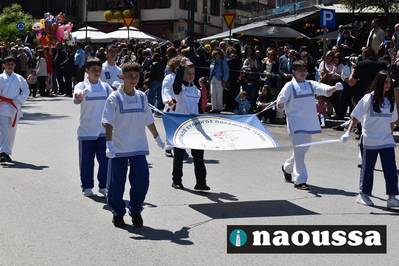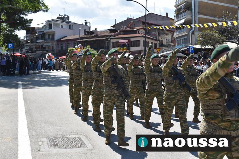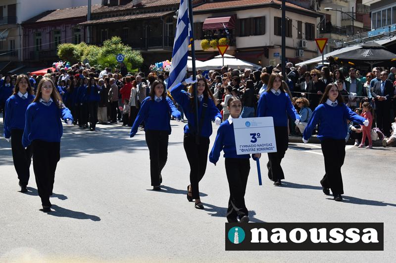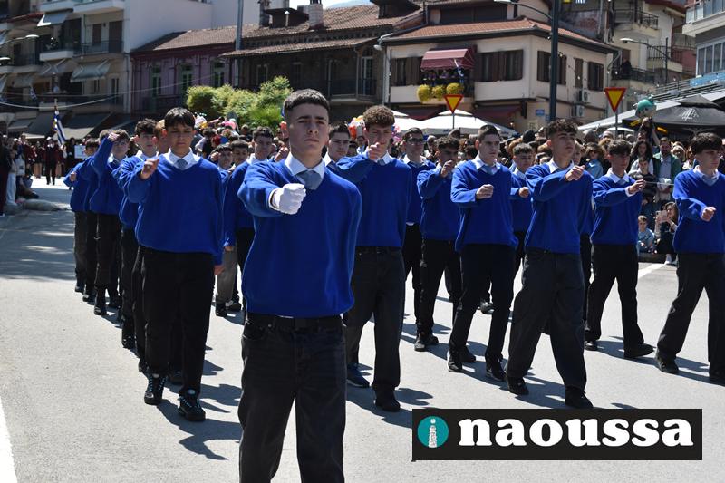 Καταχειροκροτήθηκαν τα μέλη των πολιτιστικών, αθλητικών σωματείων, οι μαθητές των σχολείων και ο Ελληνικός Στρατός στην παρέλαση του Ολοκαυτώματος της Νάουσας το μεσημέρι της Κυριακής. Κόσμος κάθε ηλικίας συγκεντρώθηκε στην Μεγάλου Αλεξάνδρου για να δει την παρέλαση που ολοκληρώθηκε με επιτυχία.