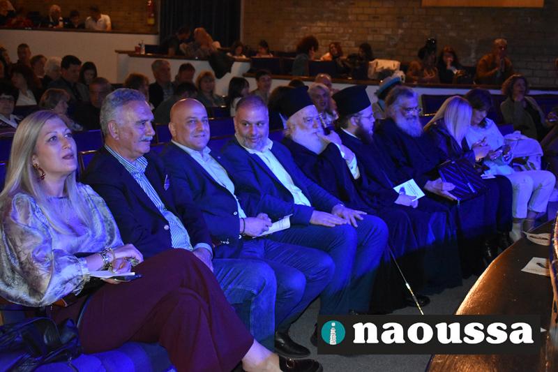 Τους παρευρισκόμενους καλωσόρισε ο κ. Γιώργος Ορδουλίδης, ενώ χαιρετισμούς απηύθυναν ο Μητροπολίτης Βεροίας, Ναούσης και Καμπανίας Παντελεήμων, ο βουλευτής Ημαθίας Βασίλης Κοττίδης και ο δήμαρχος Νάουσας Νίκος Κούτσγιαννης, οι οποίοι υπογράμμισαν τη σημασία της ιστορικής μνήμης και της πολιτιστικής έκφρασης.