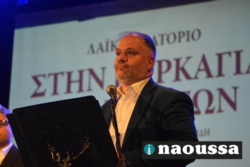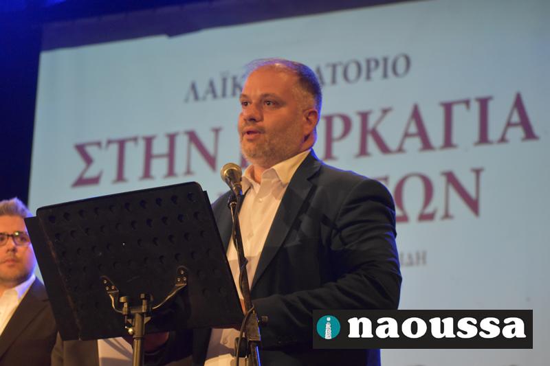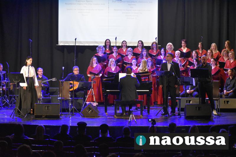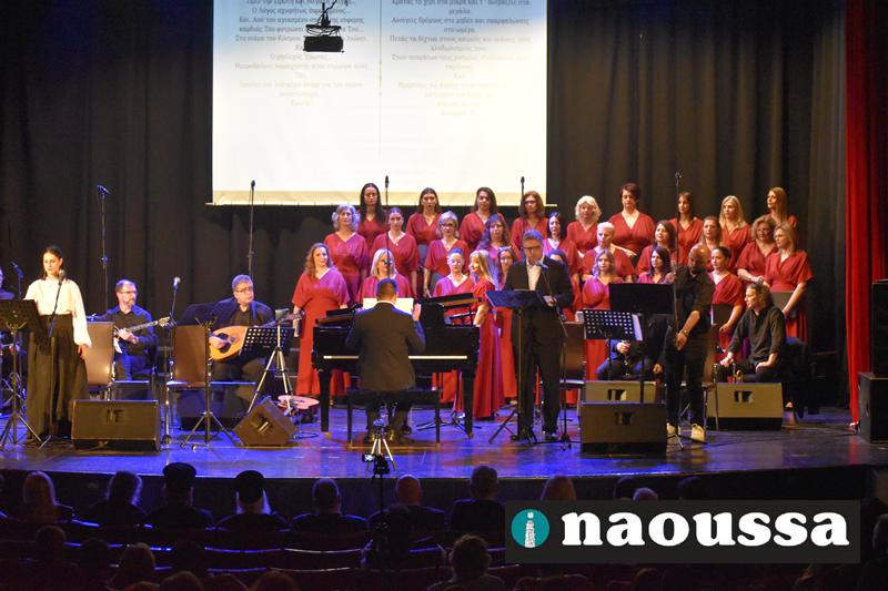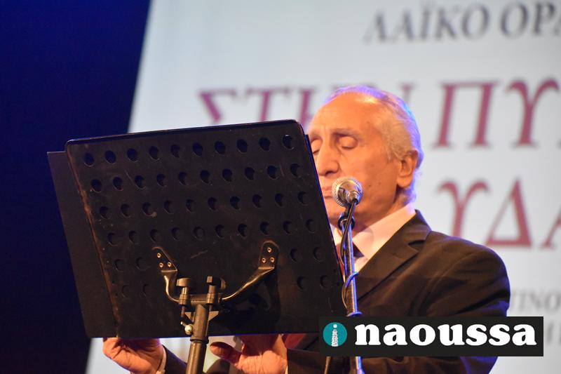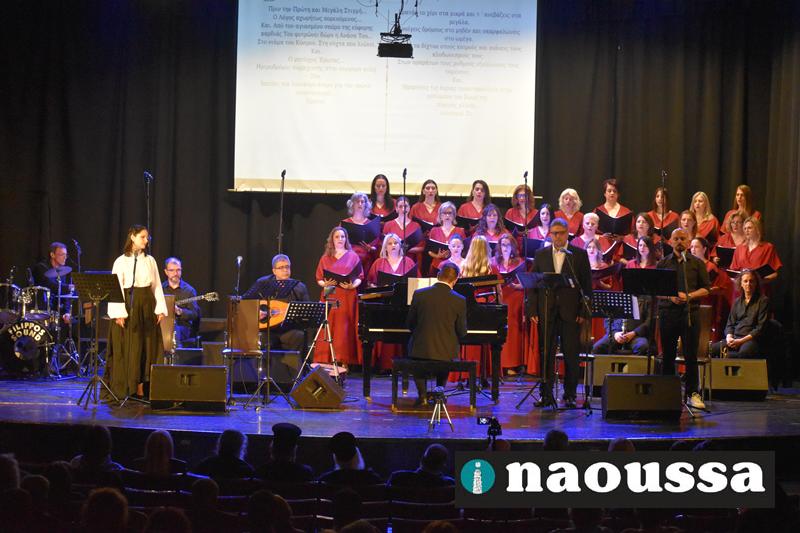 Με ιδιαίτερη επιτυχία και σε κλίμα βαθιάς συγκίνησης πραγματοποιήθηκε χθες, Κυριακή 19 Απριλίου 2026, στο Δημοτικό Θέατρο Νάουσας «Μίκης Θεοδωράκης», η παρουσίαση του λαϊκού ορατορίου «Στην Πυρκαγιά των Υδάτων», στο πλαίσιο των εκδηλώσεων για την 204η Επέτειο του Ολοκαυτώματος της Ηρωικής Πόλης της Νάουσας.