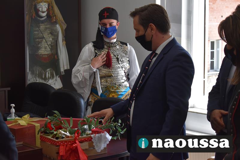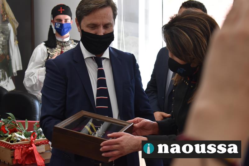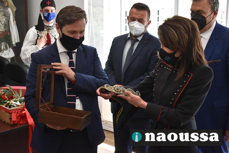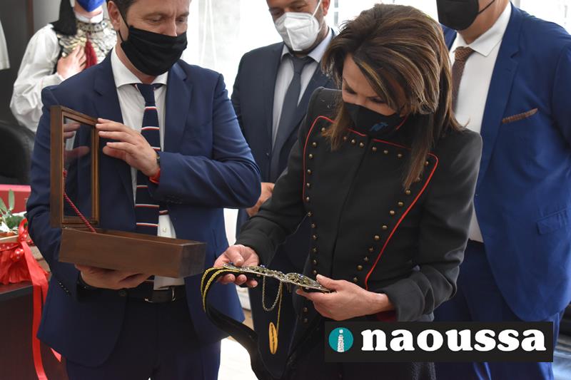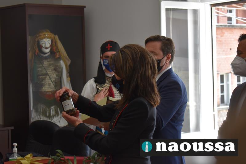 Στα πλαίσια της επίσκεψής της στην πόλη για την 199η Επέτειο του Ολοκαυτώματος της Νάουσας η κα. Γιάννα Αγγελοπούλου – Δασκαλάκη βρέθηκε στους χώρους του δημαρχείου και δέχτηκε αναμνηστικά δώρα από τη Νάουσα.